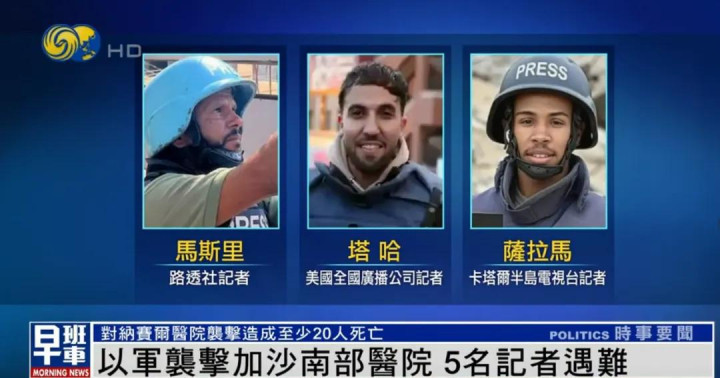 以军空袭加沙医院5名记者遇难